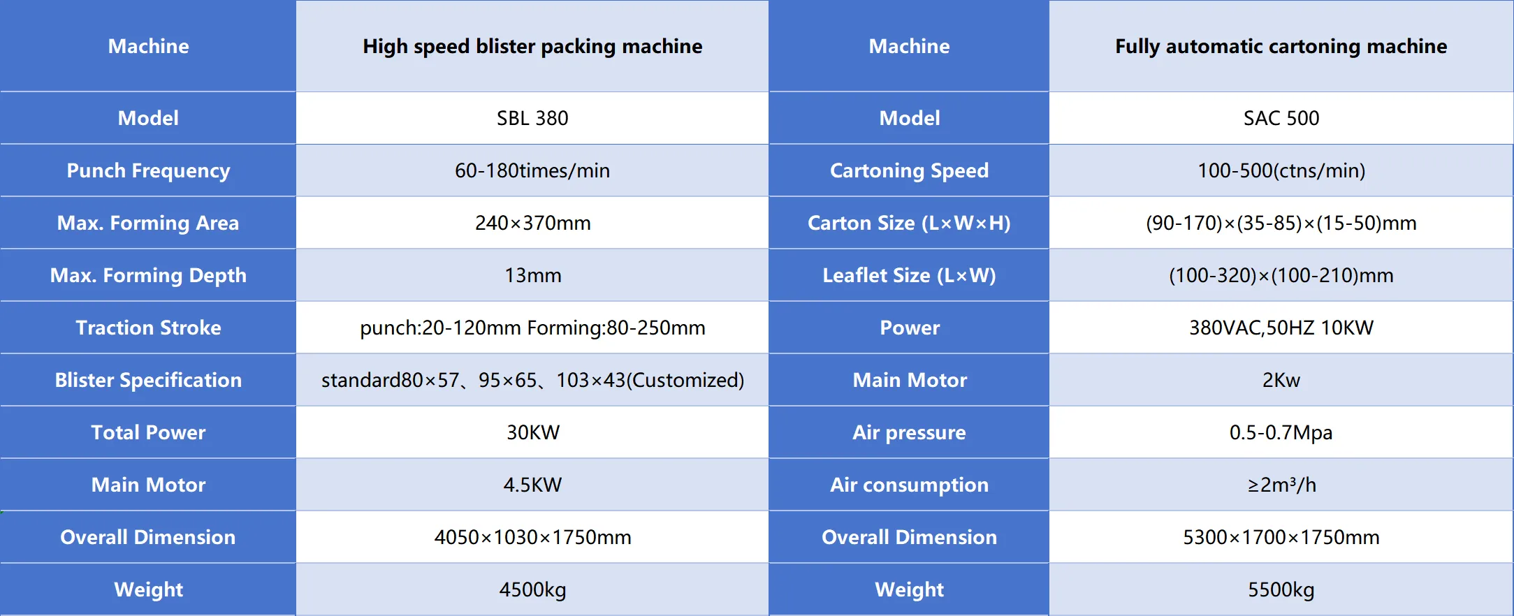 Current Product: SBL 380 Blister Packaging Line